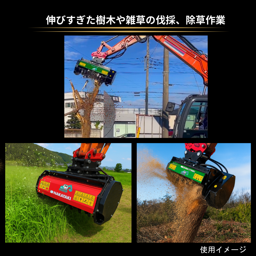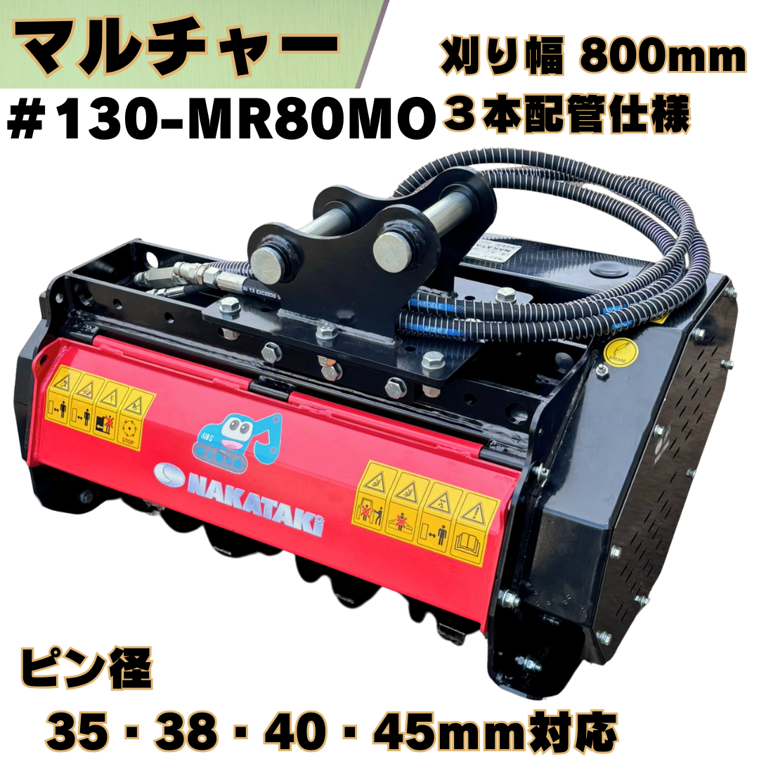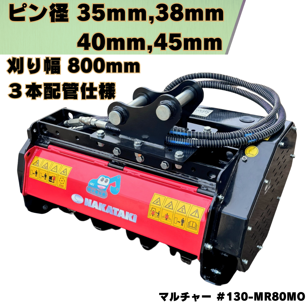 マルチャー ピン径35mm・38mm・40mm・45mm対応 刈り幅800 コマツ クボタ CAT ヤンマー 日立建機 コベルコ IHI 住友建機 ハニックス 北越工業 等 適合 / 粉砕機 草刈機 モア 3本配管 ハンマーナイフ 重機 アタッチメント ユンボ 油圧 バックホウ #130-MR80MO NAKATAKI