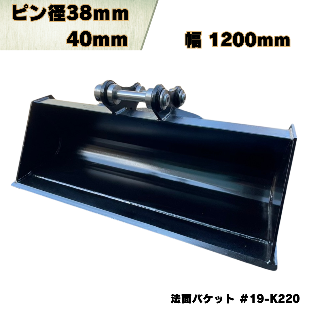 法面 バケット ピン径38, 40mm 幅1200mm ピン間距離220mm コマツ クボタ CAT ヤンマー 日立建機 コベルコ IHI 住友建機 ハニックス 北越工業 他適合/ 平バケット 広バケット 土羽 地固め 田面 堀削 重機 アタッチメント ユンボ バックホー #19-K220 NAKATAKI