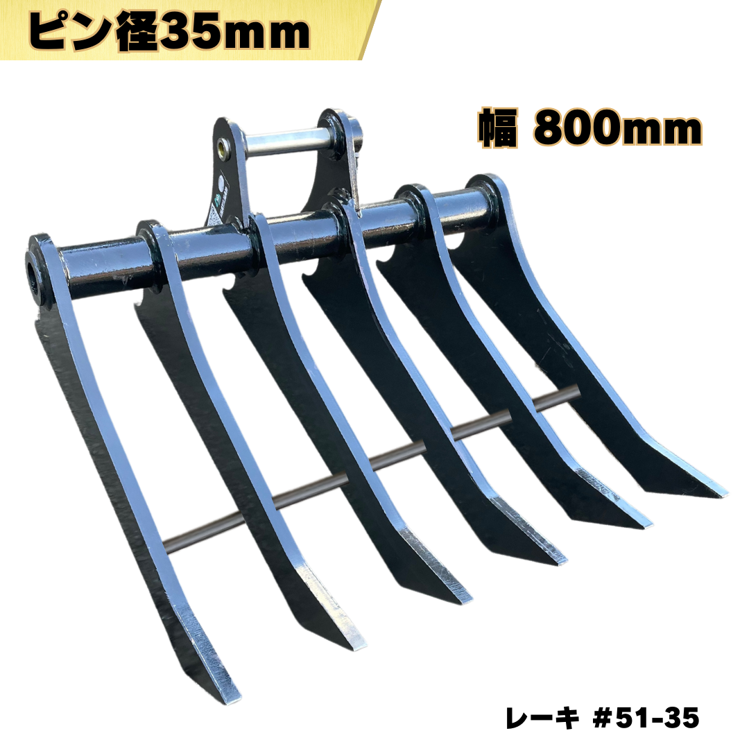 レーキ ピン径35mm ピン間200mm 幅800mm コマツ 日立建機 コベルコ CAT IHI ハニックス 住友建機 北越工業 ヤンマー 他適合/ 集草 除草 整地 重機 バケット アタッチメント ショベル ユンボ バックホー #51-35 NAKATAKI