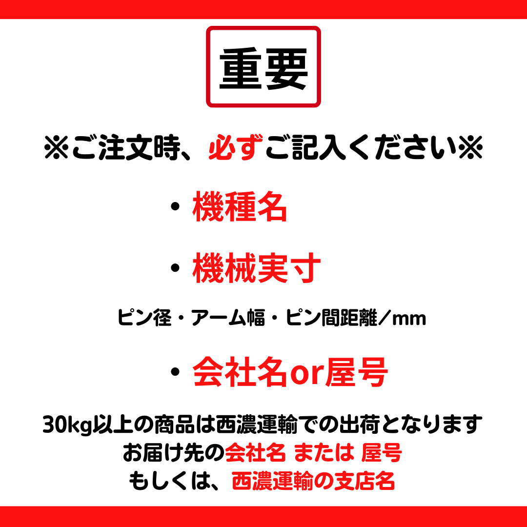 付属品 バケットピン2本、スペーサーシム(必要な場合のみ)