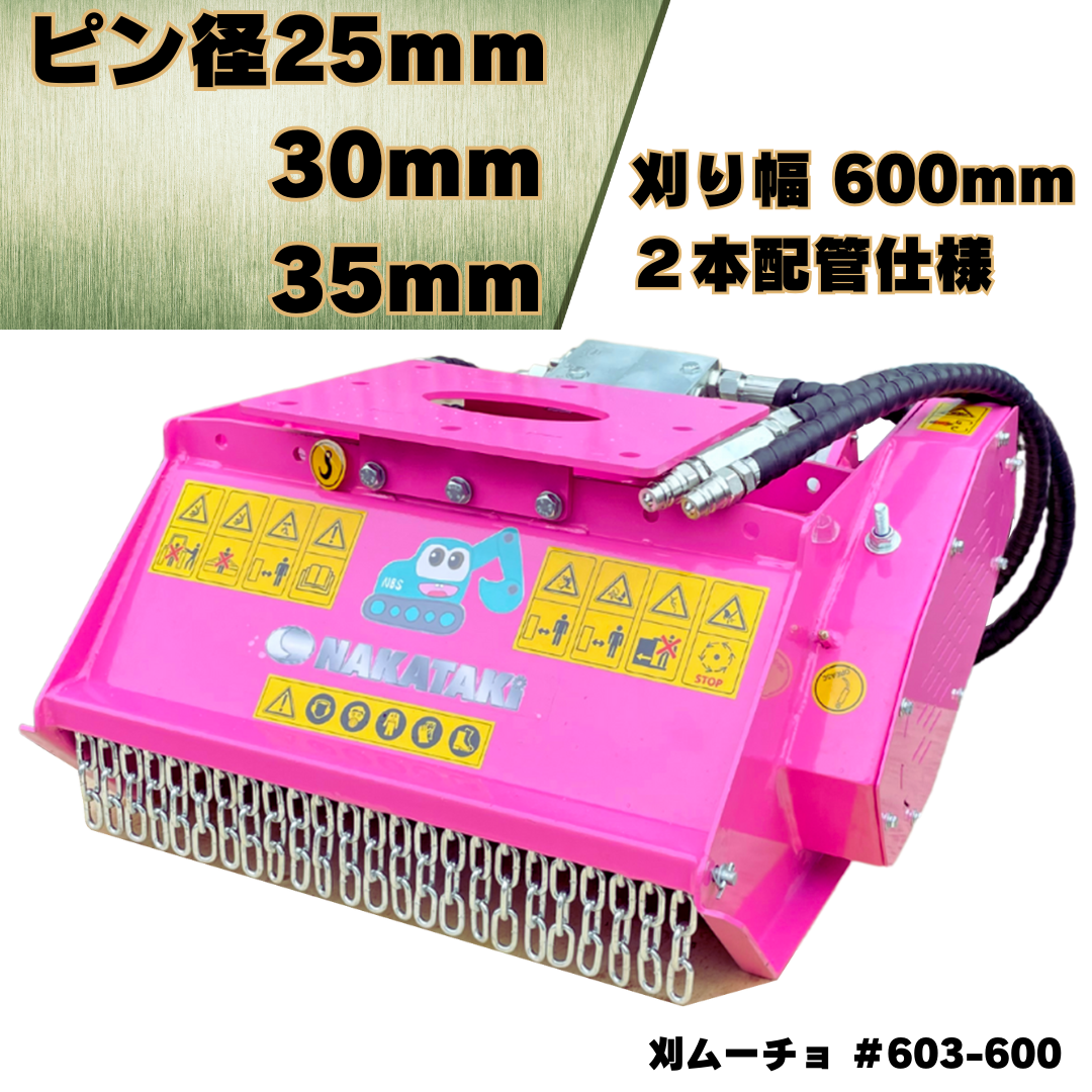 大人気! 草刈機 刈ムーチョ 刈り幅 600mm ピン径 25・30・35mm対応 コマツ クボタ ヤンマー CAT コベルコ 日立 IHI ハニックス 北越工業 等 適合/ 法面 油圧草刈機 ハンマーナイフモア 重機 建機 アタッチメント ユンボ バックホー #603-600 NAKATAKI