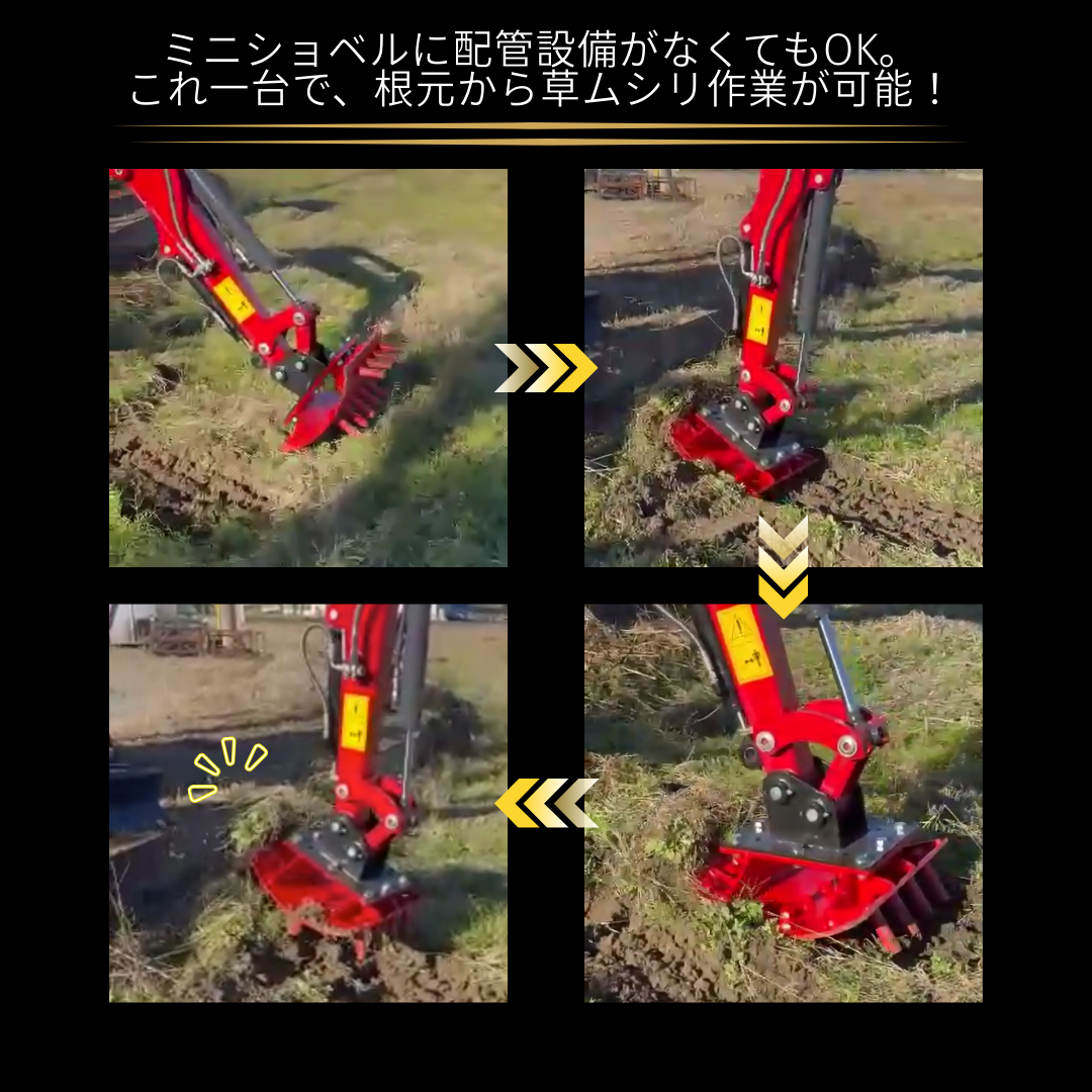 ミニショベルに配管設備がなくてもOK。これ一台で、根元から草ムシリ作業が可能!