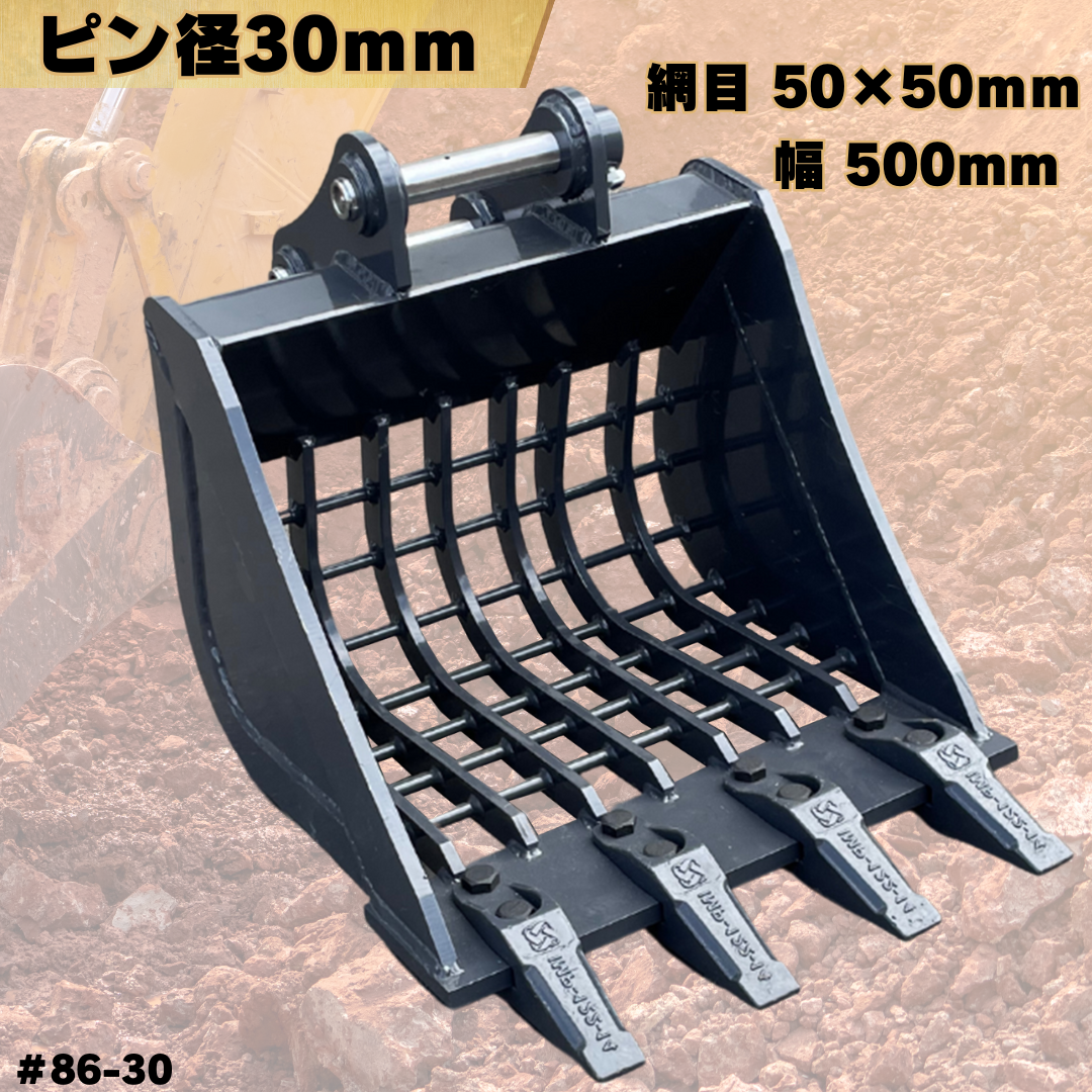 スケルトンバケット ピン径30mm 幅500mm 網目50×50mm コマツ クボタ 日立 ヤンマー CAT 等適合/ 網バケット ふるい ガラ 選別 重機 アタッチメント ユンボ ショベル バックホウ #86-30 NAKATAKI