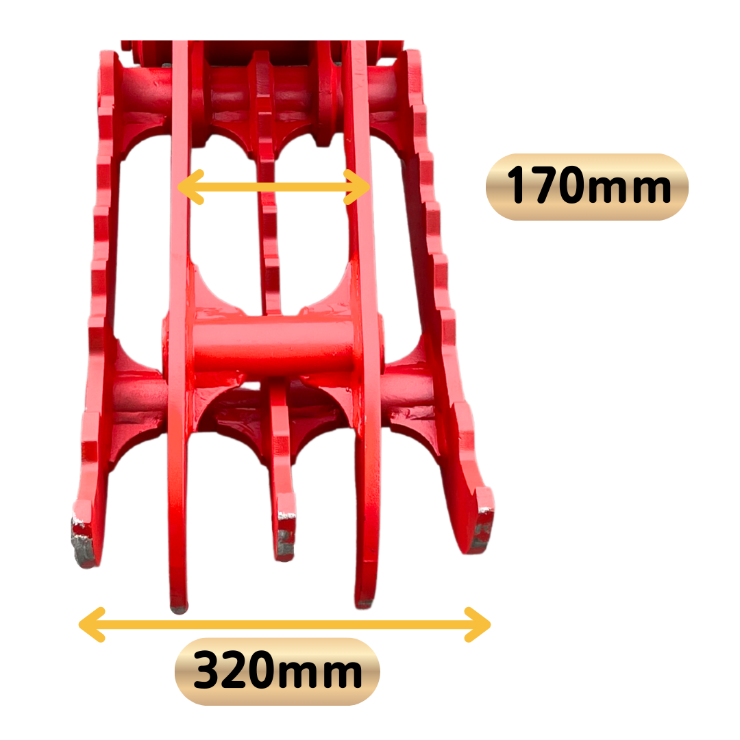 | 備考 | ※アーム幅は、スペーサーシムにて対応いたします ※抜根作業は、破損の原因になるためご遠慮ください。 ※簡易塗装仕上げとなります 【確認事項】 ・ご使用の機械の配管設備がアタッチメントに適合するかご確認ください ・油圧ホースを繋ぐ際のアダプター(エルボ)は、お客様自身でご用意ください |